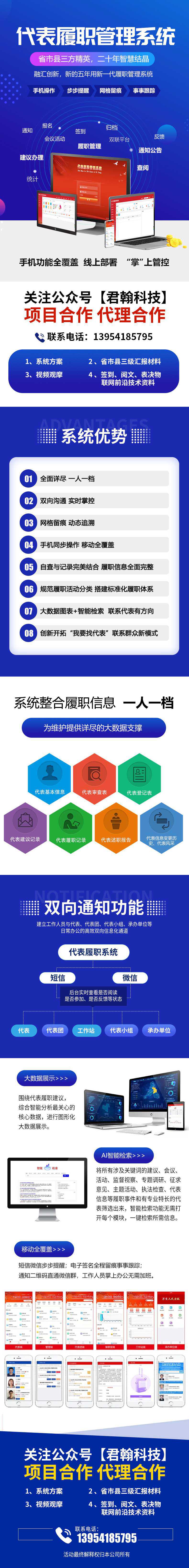 君翰科技开发的新一代履职管理系统,有效解决了代表履职缺乏技术、缺乏数据支撑,建立代表之间、代表与人大机构、代表与承办单位、代表与企业、代表与群众实时沟通渠道